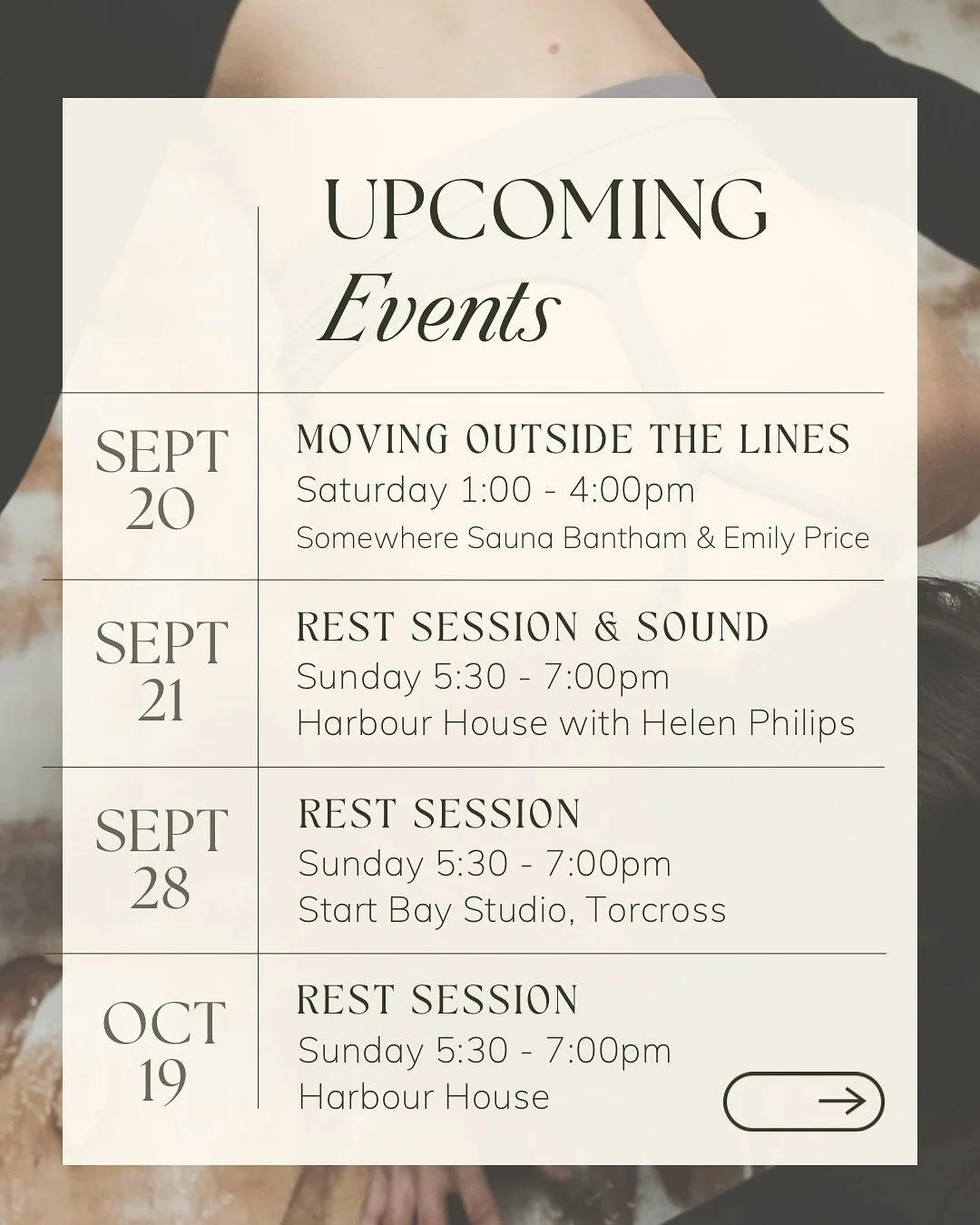 These session sell out, so be the first to know when the Autumn & Winter Series are open to bookings. Rest Sessions will be expanded to Kingsbridge from Autumn 2025.